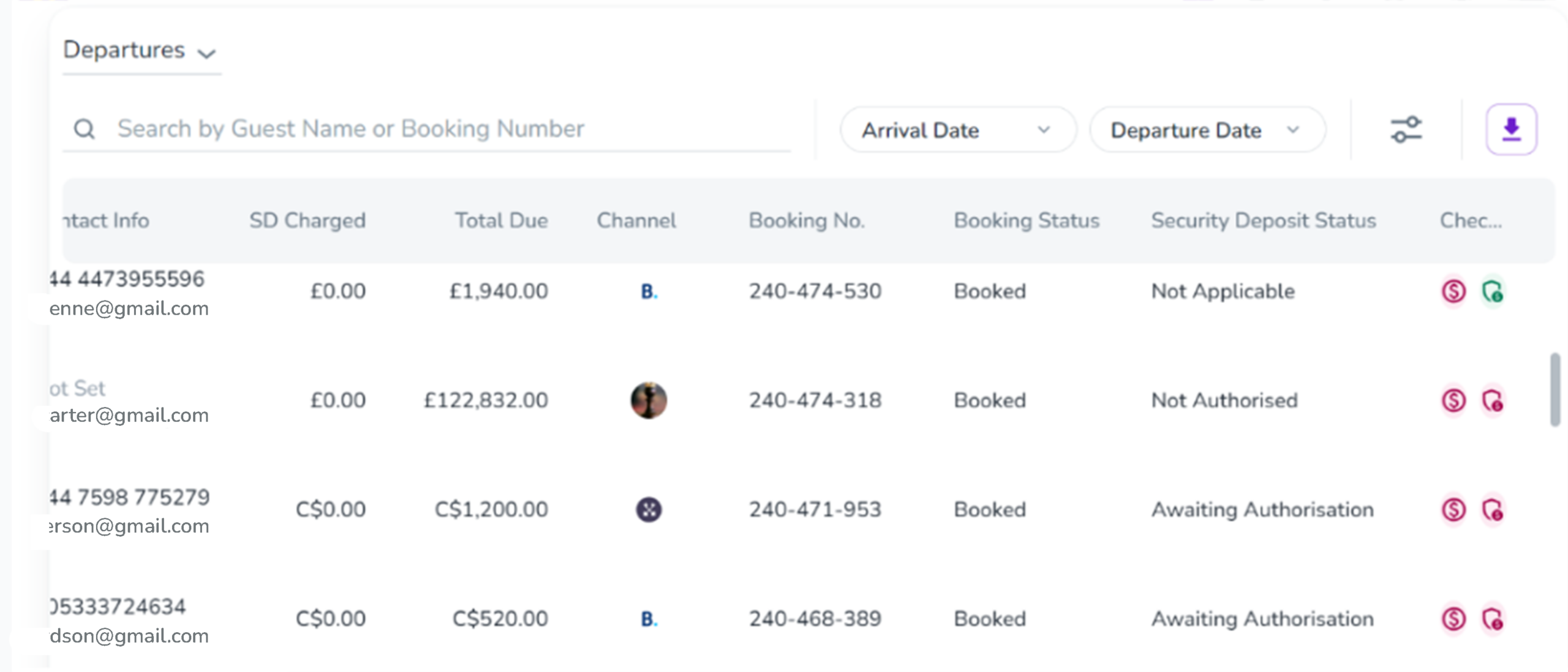 Quickly check your properties’ cleanliness via the occupancy calendar and monitor issues from the related section. If no problems are reported and the guest is ready to check out, you can immediately finalise the booking to release the security deposit.