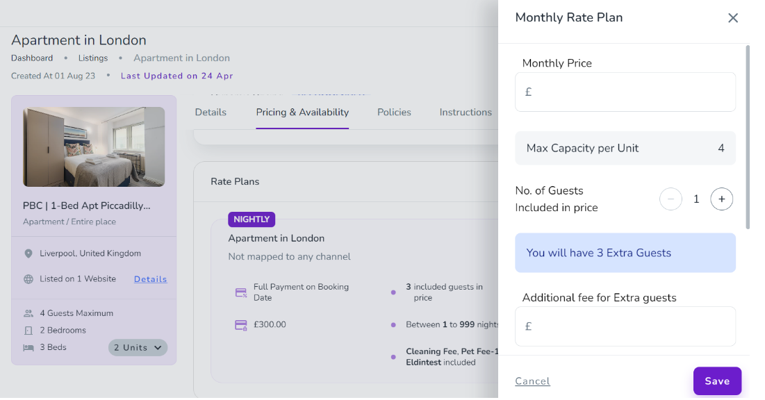 Zeevou simplifies setting extended stay monthly rates and ensures consistent invoicing. Our system supports multiple rate plans for the same unit type, allowing different rates for nightly and monthly stays. This flexibility helps holiday home managers reduce the risk of empty properties by combining short-term, medium-term, and long-term rentals, based on changing market conditions.