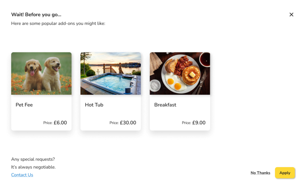 Increase your profit margins by selling additional products and services using Zeevou vacation rental upsells.