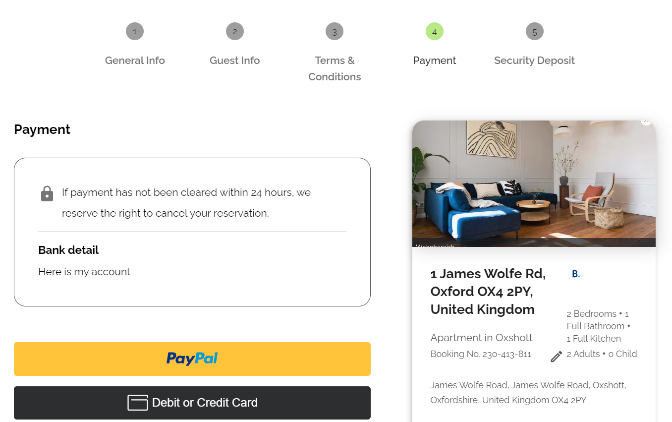 Procesi Payments Automatike i integruar plotësisht Zeevou e thjeshton të gjithë procesin e rezervimit.. Ju ndihmon të mbani gjurmët e pagesave dhe të automatizoni mbledhjen e pagesave për vetë qëndrimin ose për çdo produkt shtesë të blerë nga mysafiri.